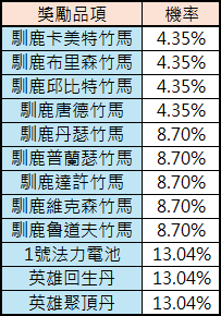 - 備註:機率為四捨五入至小數後3位,機率總和可能並非100%