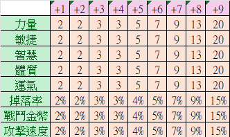 - 提醒 高級加工成功率較低,建議依自身資源與目標屬性評估後,再投入材料與金幣。