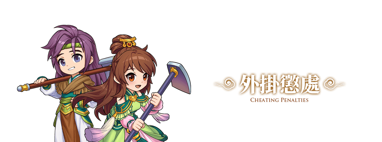依情節大小將進行不同懲處,懲處會員帳號與遊戲帳號凍結7日或會員帳號終止契約,嚴重情況下,將連同該帳號身分證、IP關相聯帳號全部一起終止,並且封鎖電腦碼。